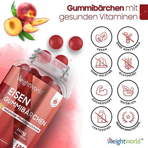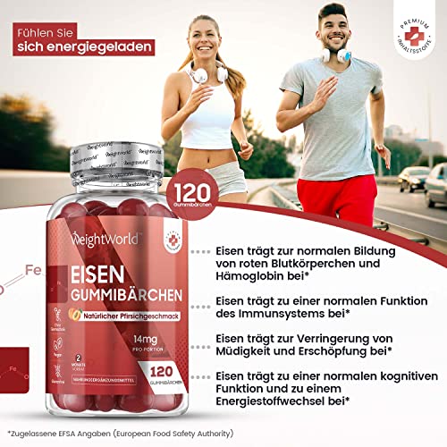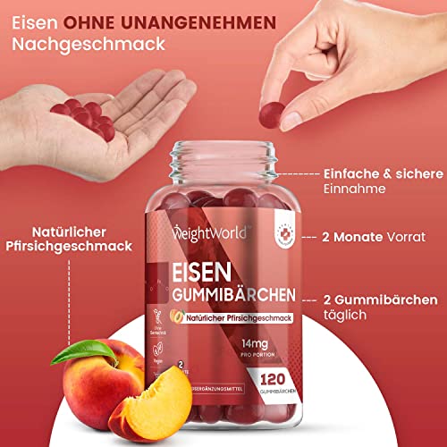 Wichtiger Mineralstoff Eisenfumarat – Eisen ist einer der wichtigsten Nährstoffe. Jede Packung enthält 120 vegane Gummibärchen (keine Eisentabletten oder -kapseln), die für 2 Monate reichen. Nehmen Sie täglich 2 leckere Eisen Gummibärchen pro Tag und genießen Sie den köstlichen Pfirsichgeschmack.