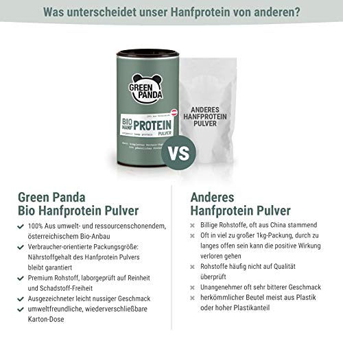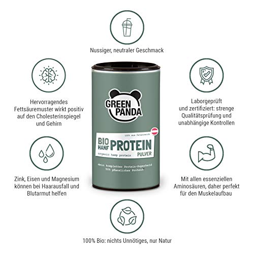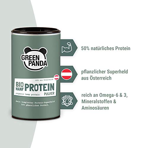 GREEN PANDA® Bio Hanfprotein mit 50g pflanzlichem Eiweià aus Ãsterreich | Hanfproteinpulver Bio ist ideal für deinen Proteinshake | 175g