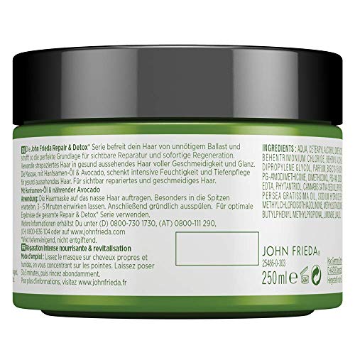John Frieda Repair & Detox Masque – Die intensive-pflegende Richtschnur nährt Dies Haar statt eine sofortige Revitalisierung. Lebloses, stumpfes Haar wird Mit Hilfe von neuer Diensteifer versorgt. Dies Endergebnis: ausgeprägt repariertes Haar, voller Lebendigkeit, Geschmeidigkeit außerdem Brillianz. wirkt tiefenreinigend, keineswegs entgiftend.