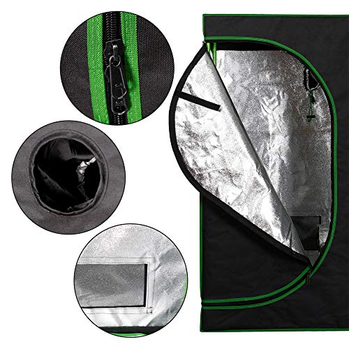 TOP QUALITÄT: Der schwarze Stoffbezug ist jeglicher einem stabilen hochwertigen Material gefertigt und ist dann 99,9 % lichtundurchlässig. Die Innenseiten von diesem Grow tent besitzen eine hochreflektierende Folie und sorgt statt eine Lichtreflektion von 95% und fördert effektives Wachstum der Pflanzen. Die Metallkonstruktion in der Farbe Grün mit Kunststoffeckverbindern, sorgt statt einen stabilen Stand.