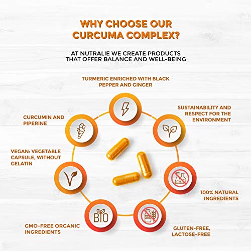 Kurkuma Kapseln – Ingwer + Pfeffer Piperin (1420mg x dosis) Curcumin und Piperin – Curcuma Komplex – 120 Kapseln – Nutralie