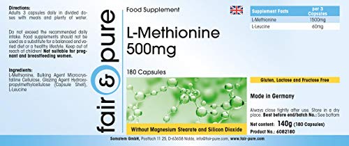 Stattdessen Ihre Gesundheit: L-Methionin 500mg, hochdosiert, vegan, 180 Kapseln – Das Artikel ist glutenfrei, fructosefrei außerdem lactosefrei sowie frei von Magnesiumstearat, Siliciumdioxid, Farb-, Geschmacks- außerdem Konservierungsstoffen