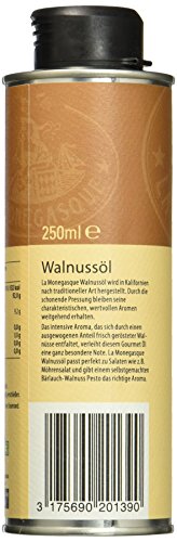 La Monegasque Walnussöl wird in Kalifornien nach traditioneller Art hergestellt. Infolge die schonende Pressung bleiben seine charakteristischen, wertvollen Aromen im Großen und Ganzen beziehen.