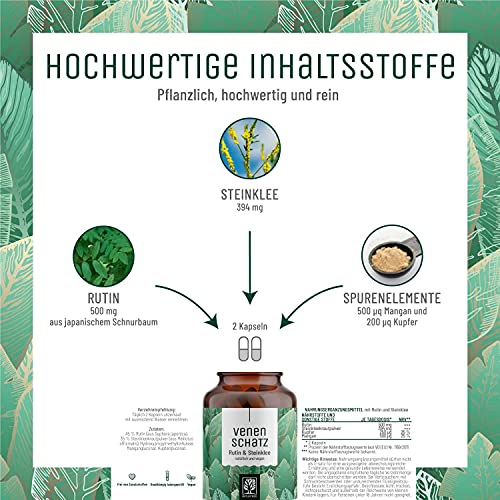 WISSENSCHAFTLICH & REIN – Die Venenschatz Rutin unter anderem Steinklee Kapseln wurden über der aktuellsten Studien entwickelt, enthalten die stärksten Flavonoide hochdosiert unter anderem sind Ohne von Zusätzen