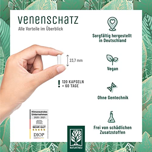 SORGFÄLTIG HERGESTELLT – Naturtreu Venenschatz wird in der Tiefe höchsten Qualitätsstandards in Deutschland hergestellt & von unabhängigen Laboren geprüft. Die planzliche Option zu Venenkapseln