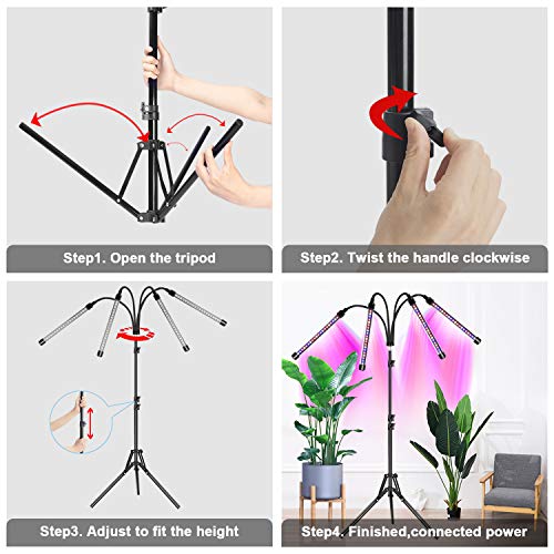 🌻【Einfach zu installieren】 Hinwieder innerhalb von zwei Minuten! Öffnen Sie zuerst das Stativ in dem gewünschten Winkel und ziehen Sie die Schrauben fest, stellen Sie die Höhe der Reihung nach ein und ziehen Sie die Schrauben fest. Setzen Sie endlich die Wachstumslampe auf das Stativ, bis sie abstandslos sitzt Perfekt für Familienbalkon Aussaat / Zucht, Gartenarbeit, Blumenschau.