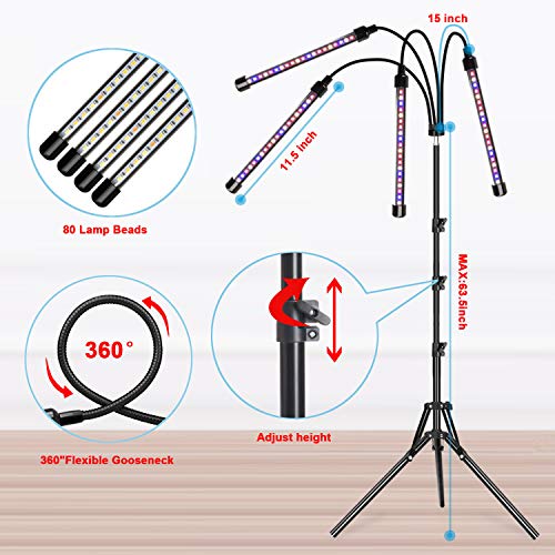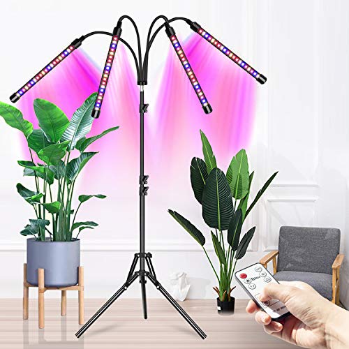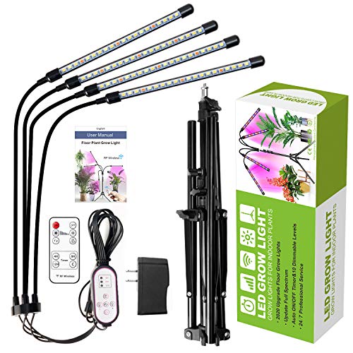 wolezek LED Pflanzenlampe mit Ständer, Bodenpflanzenlicht Vollspektrum 4 Köpfe für Zimmerpflanzen,Grow Lamp Tripod einstellbar15-61Inch,Timing 6/12/16H,3 Modi & 5-stufige Helligkeit