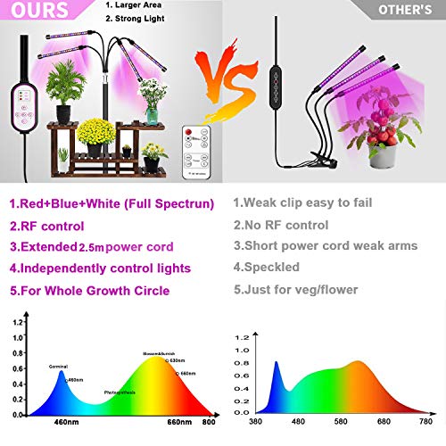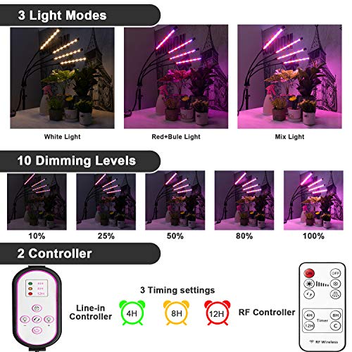 🌻【3 Lichtmodi und 10 Dimmstufen】 Die Indoor wachstumslampe enthält weißes Licht und rot / blaues Licht. Sie können 3 Farbmodi (weißes Licht, rotes / blaues Licht und gemischtes Licht) und 10 Helligkeitseinstellungen zwischen 10% und 100%, Bodenpflanzenlicht ist ideal für alle Arten von Zimmerpflanzen. Außerdem wird das 4-Arm-Rohr losgelöst gesteuert und stört sich nicht gegenseitig.